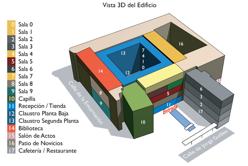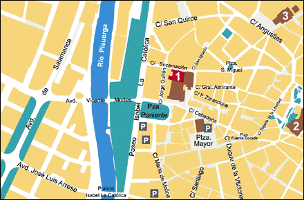 Muy cerca del museo se encuentran tres aparcamientos privados: Plaza Mayor, Plaza del Poniente y Paseo de Isabel la Católica. (Ver mapa abajo)