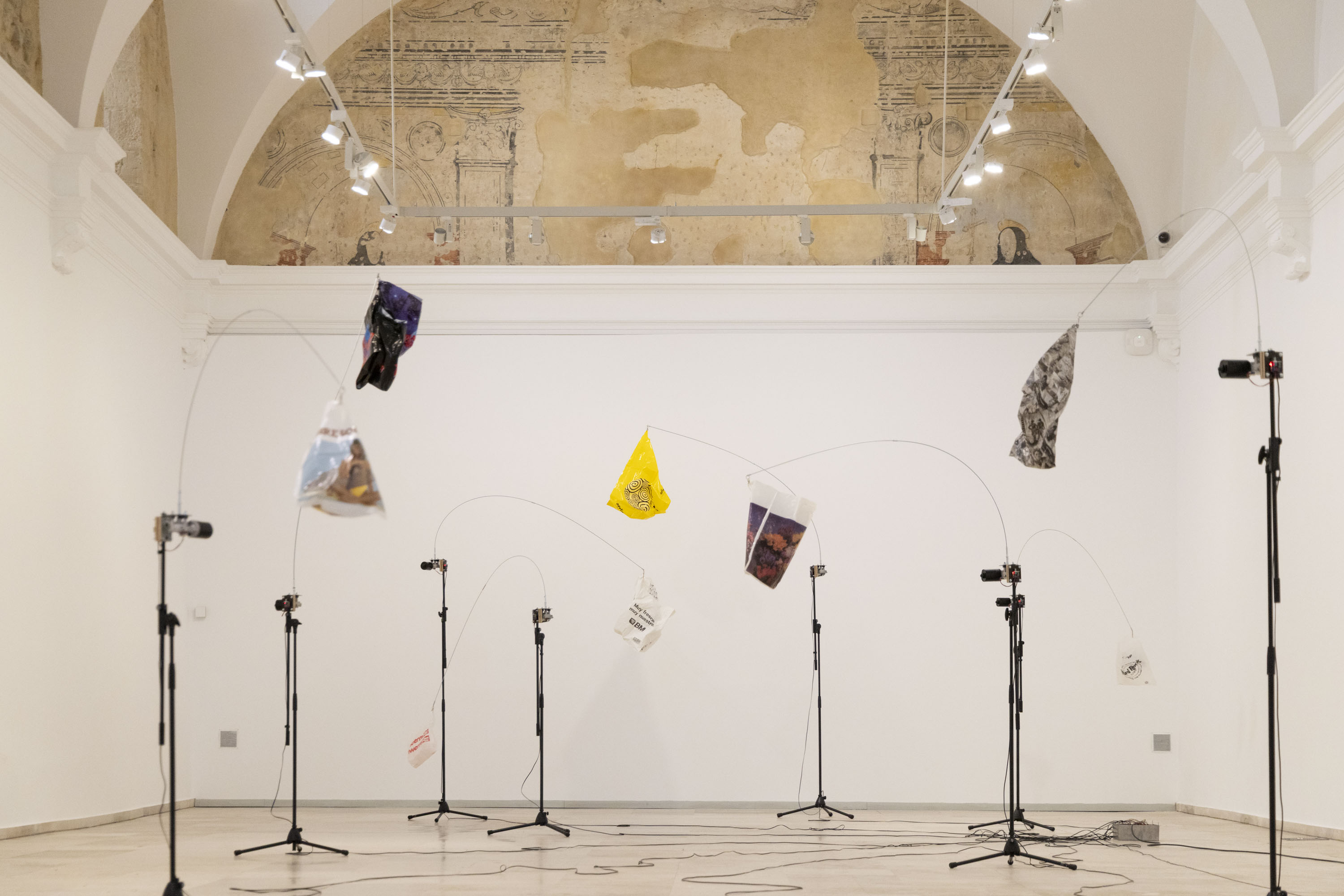 Fuster, who has lived in Berlin for many years now, pays close attention to two issues: the search for new expressive possibilities in the material and the relationship the material weaves with the body. Consequently, the focus on the dynamic potential of her work is quite striking. She has studied tradition thoroughly. Names such as Rebecca Horn and Jean Tinguely come to mind, artists who emphasised the malleability of matter and the dance of bodies. Both references, among many others, permeate her work and still resonate today. With these in mind, she has conceived her intervention in the Chapel through a large body-form that stands in the middle. It seems trapped in a succinct prismatic, industrial structure, something always present in her work, but we soon realise that this form is not only not inert but actually gives us decidedly visible vital signs. Air is matter itself, and hence the title ( ) -The air I breathe-, which Fuster takes from a clear desire to breathe life into her sculptures, to turn them into a body that breathes, just like she does. The influence of the experience of nature also emerges here, both her own and that of certain other artists, some of them Castilian, whom she has turned to after being invited to work at our institution. Air, Fuster tells us, is not the negative of things; on the contrary, it is the binding space that allows them to coexist. Air brings with it the political virtue that allows bodies to be and exist, granting them the possibility of taking up the social space in which the aesthetic exploration by the artist also desires to breathe, exist and thus produce and contribute.